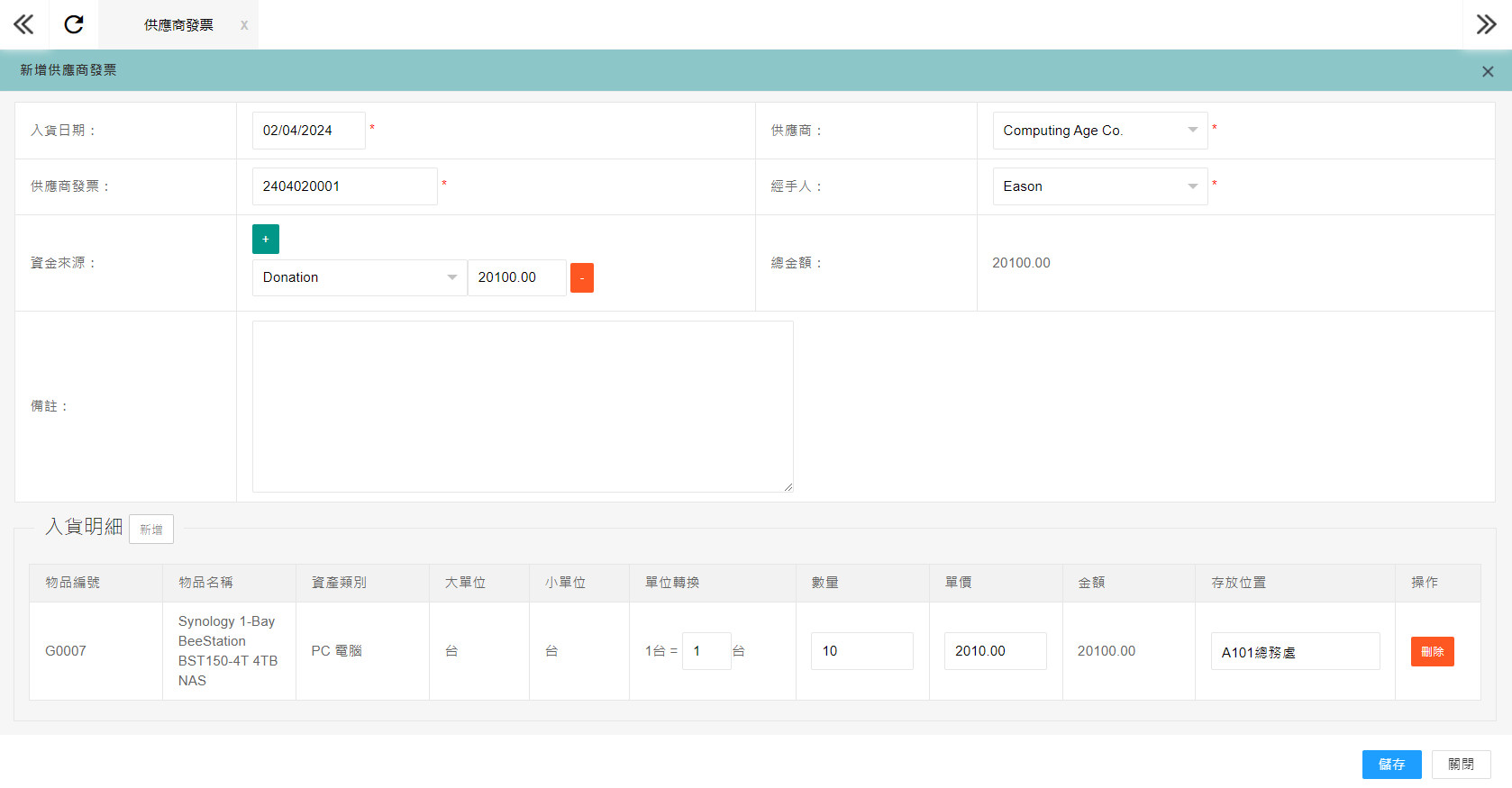 輸入物品資料 - 系統生成物品編碼 - 列印標籤 - 將標籤貼上物品上 - 掃瞄一次物品以確認物品入庫位置